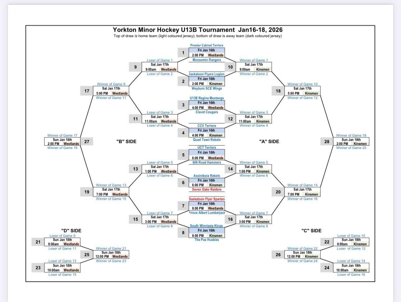 U13 "B" Tournament - January 16 - 18, 2026 - TOURNAMENT FULL